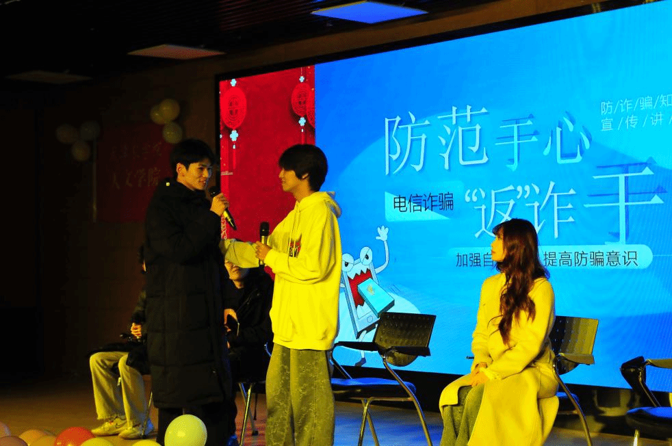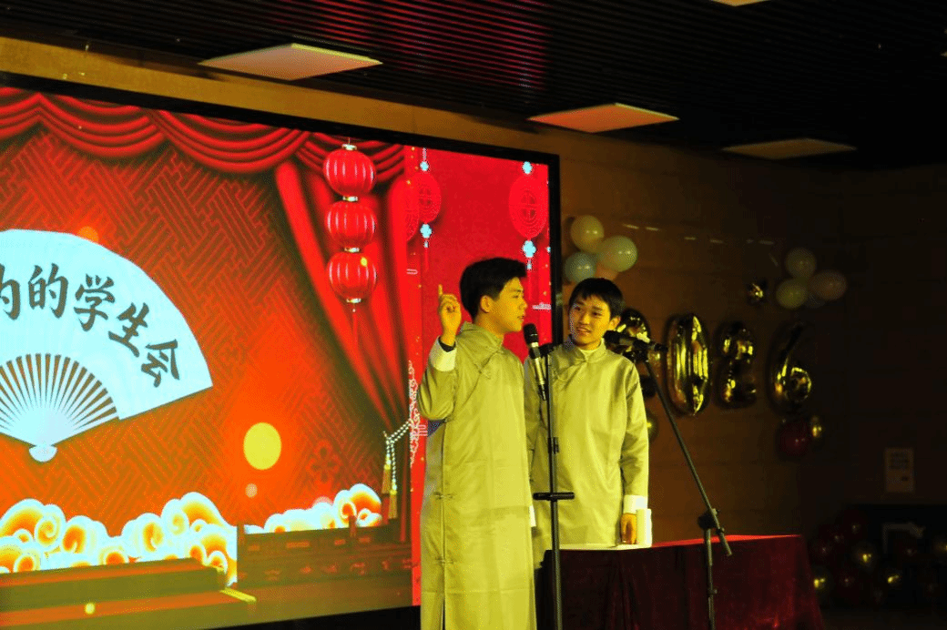 互动环节也是创意十足、亮点纷呈,成为连接师生情感的纽带。“贺卡祝福”抽取来自“上岸”“平安”“暴富”“开心”四大心愿箱的真挚祈愿,让温暖与期许在现场流转;“Emoji猜词”“正话反说”“一反常态”等趣味游戏考验着同学们的反应与智慧,台上台下互动频频,欢声笑语不断,每轮获胜者收获的不仅是礼品,更是一份岁末的欢乐。