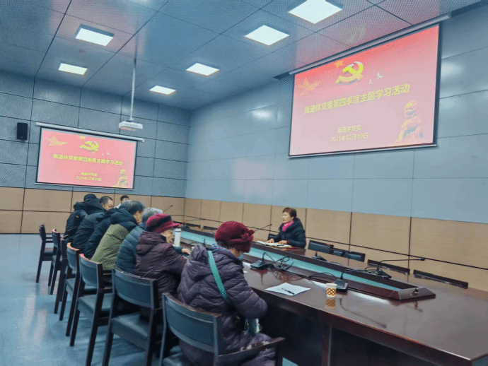 近日,离退休党委在敏学楼一楼会议室召开第四季度党员大会,离退休党委书记孟雪莲以《深学细悟党的二十届四中全会精神 助力学校高质量发展贡献银发力量》为题,为离退休党员讲授专题党课。